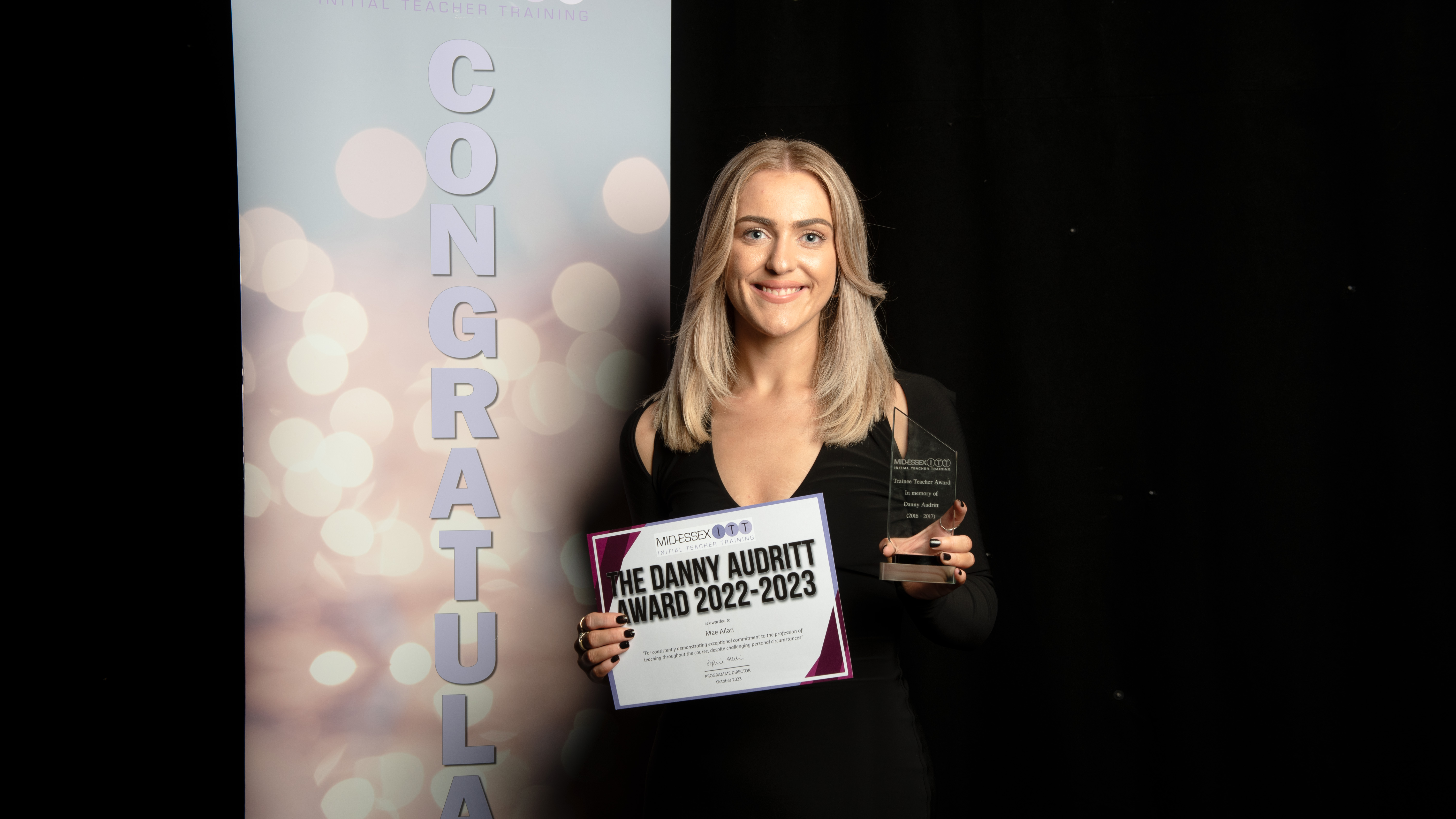 This year, the trainee chosen to receive the award in memory of Danny is Mae Allan, an English teacher who completed with Mid Essex ITT at Honywood School.